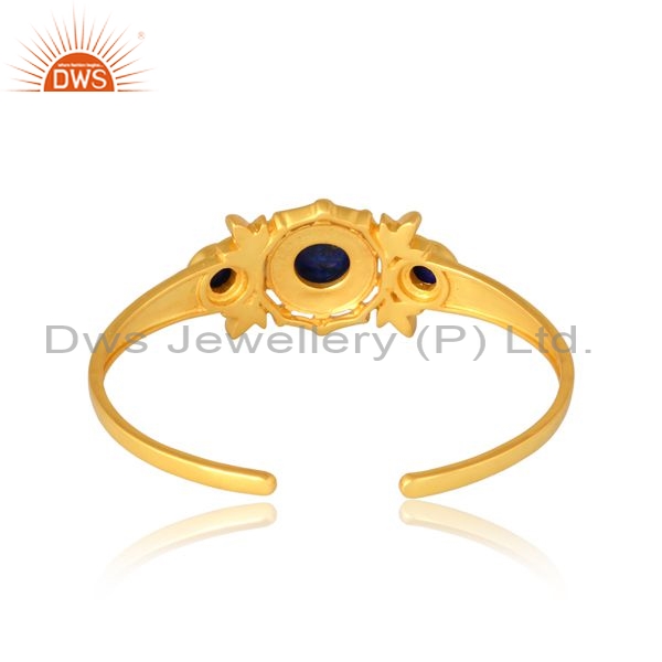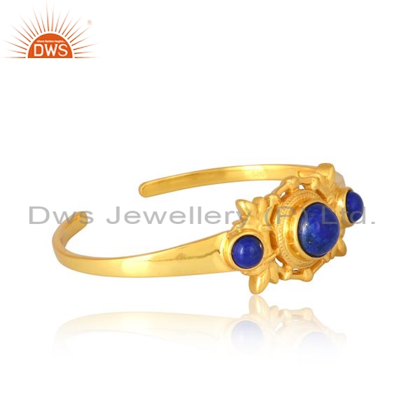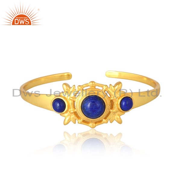 Sterling Silver Gold Cuff Large With Lapis Cabochon Stone