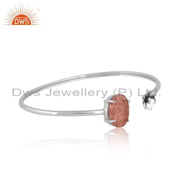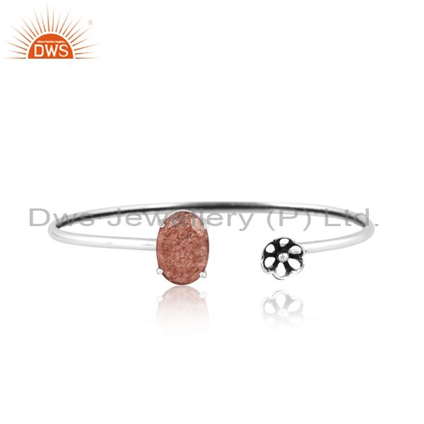 Sterling Silver Oxidized Half With Strawberry Quartz