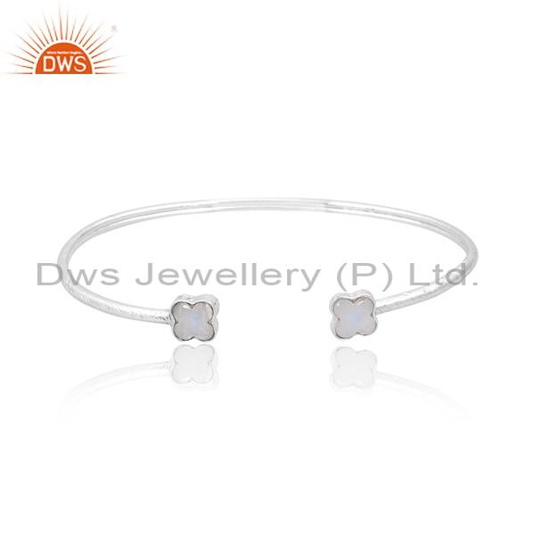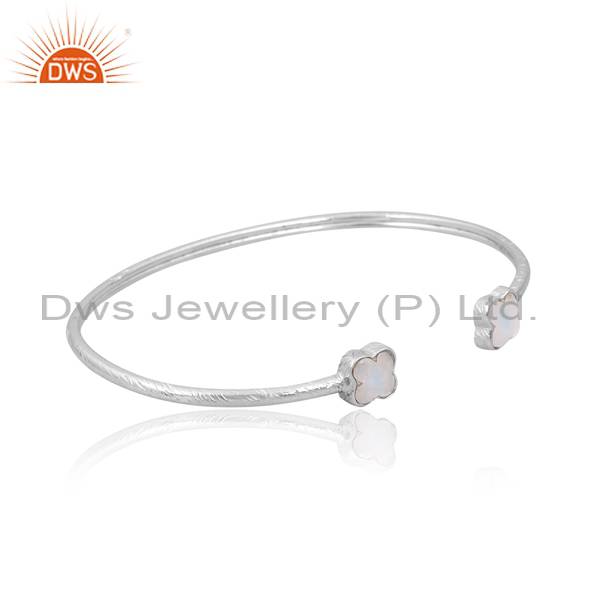 Stunning Silver Cuff W/ Rainbow Moonstone: Captivating Gems