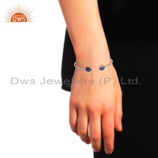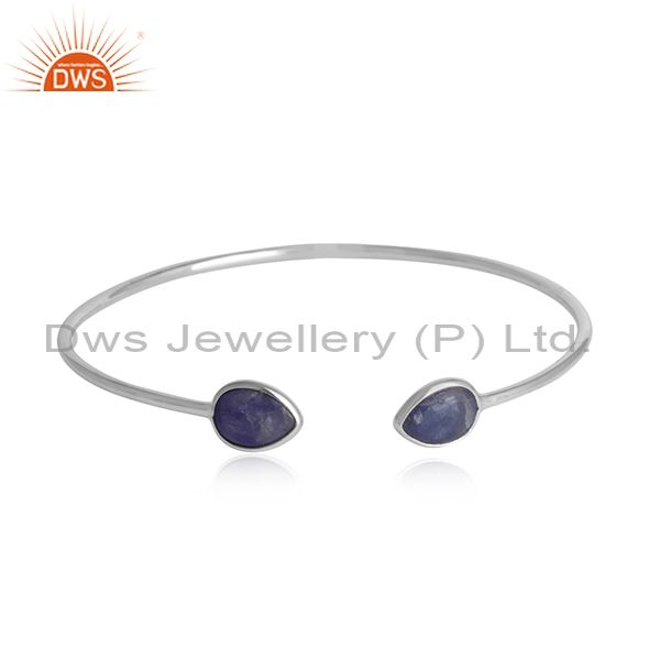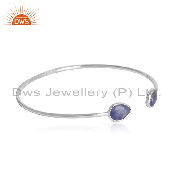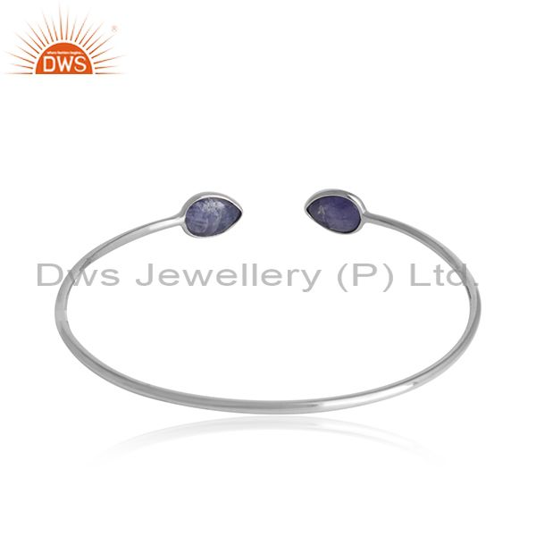 Tanzanite Gemstone Girls White Rhodium Plated Silver Cuff Bangle