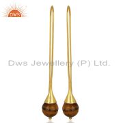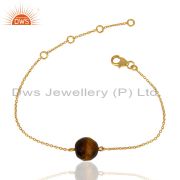 Tiger Eye 14K Yellow Gold Plated 925 Sterling Silver Cuff Bangle Jewelry