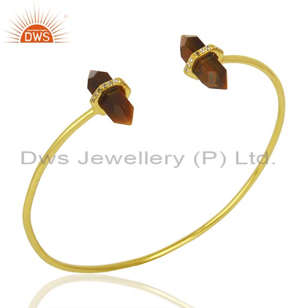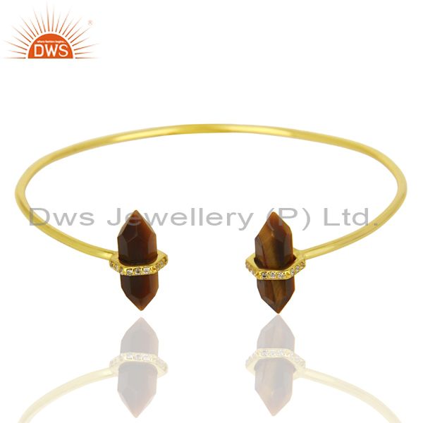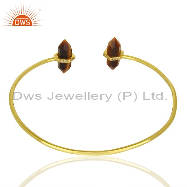 Tigereye Pencil Point Healing Openable Adjustable Gold Plated Bangle