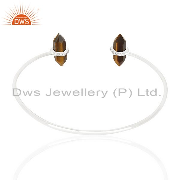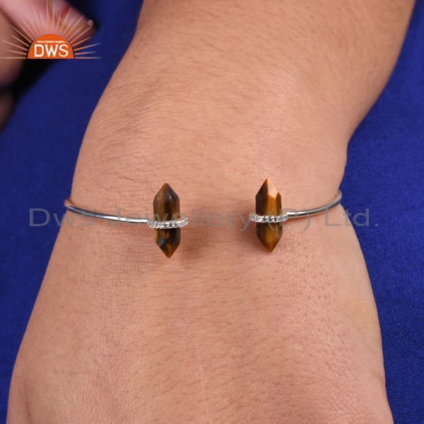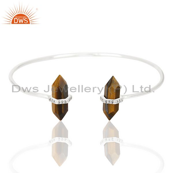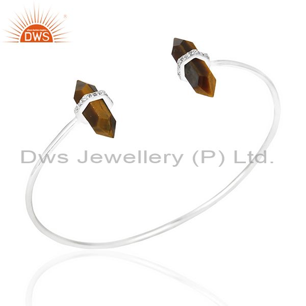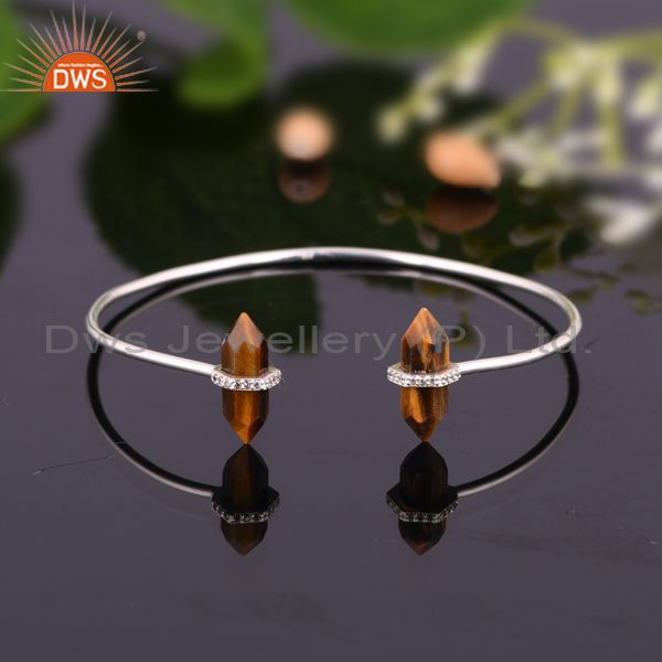 Tigereye Pencil Point Healing Openable Adjustable Sterling Silver Bangle