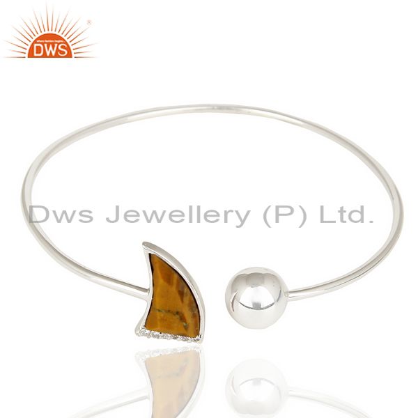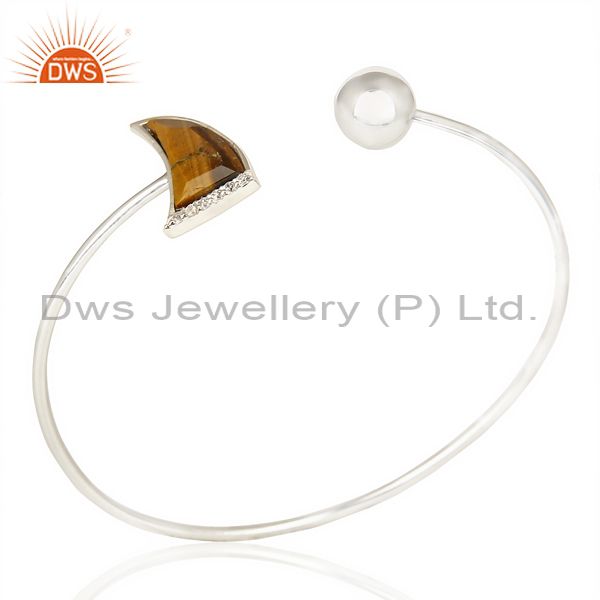 Tigereye Studded Horn Bangle In Solid 92.5 Silver Daisy Jewelry