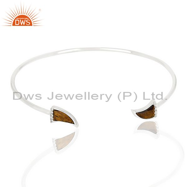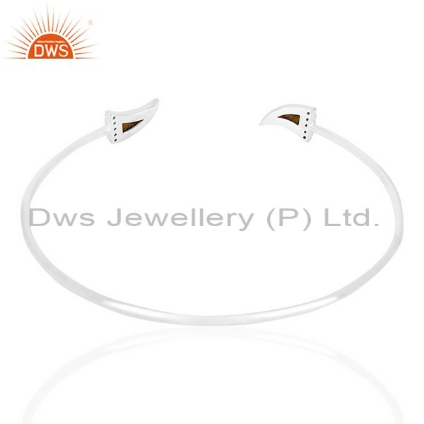 Tigereye Unisex Tooth Horn Openable Adjustable Sterling Silver Bangle