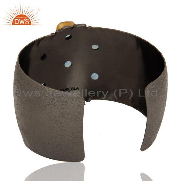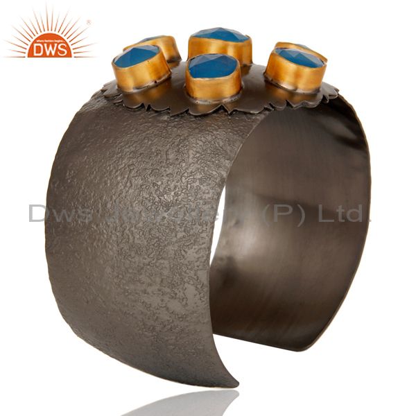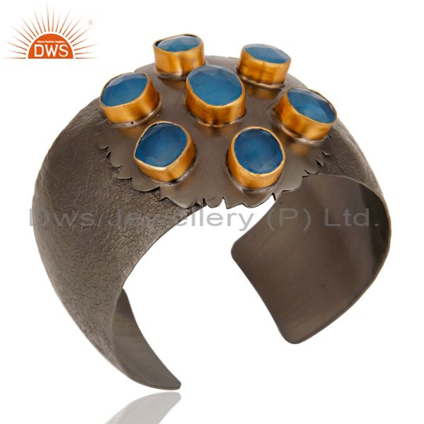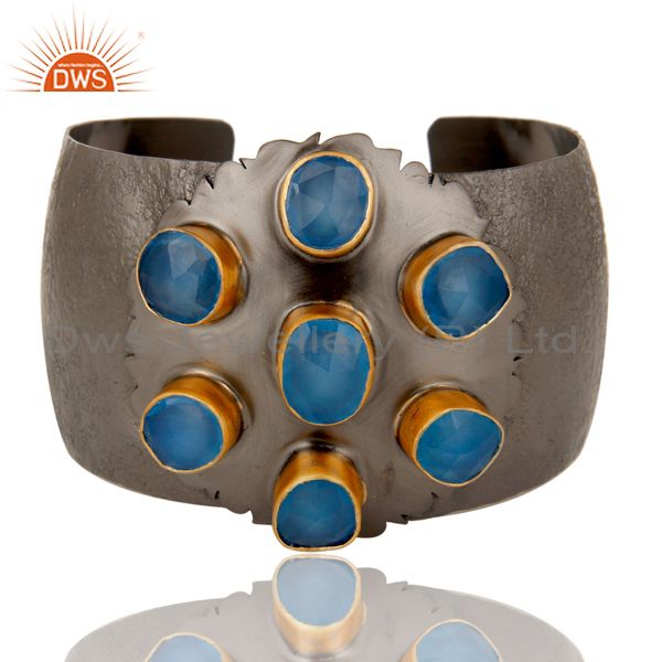 Traditional Design 18k Gold Plated Brass Cuff with Dyed Blue Chalcedony