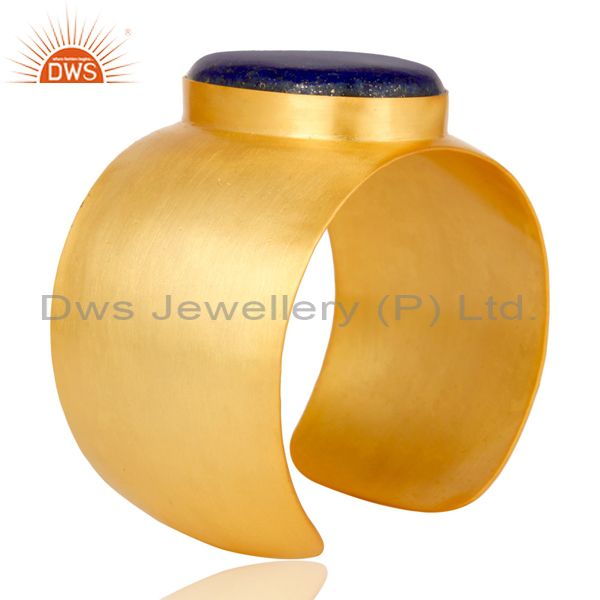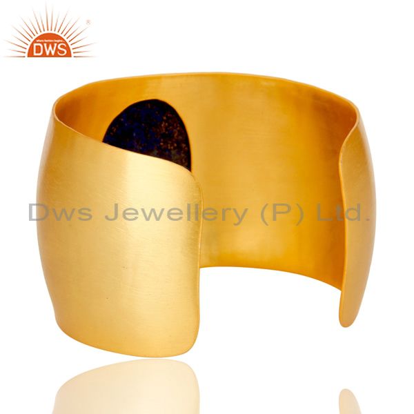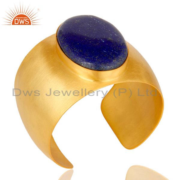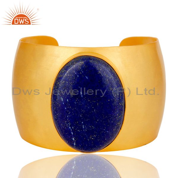 Traditional Handmade 22K Gold Plated Wide Lapis Lazuli Openable Brass Bangle