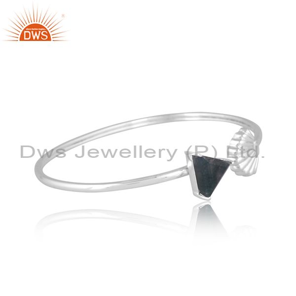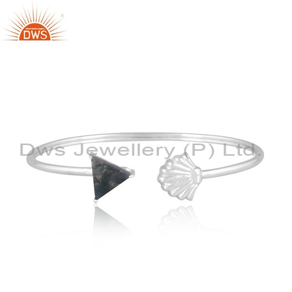 Triangular Moss Agate Set Fine Sterling Silver Designer Cuff