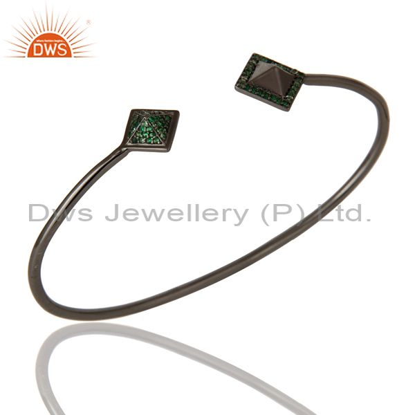 Tsavourite Sterling Silver Pyramid Cuff Black Rhodium Cuff