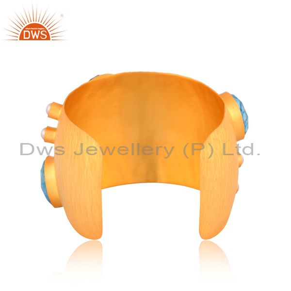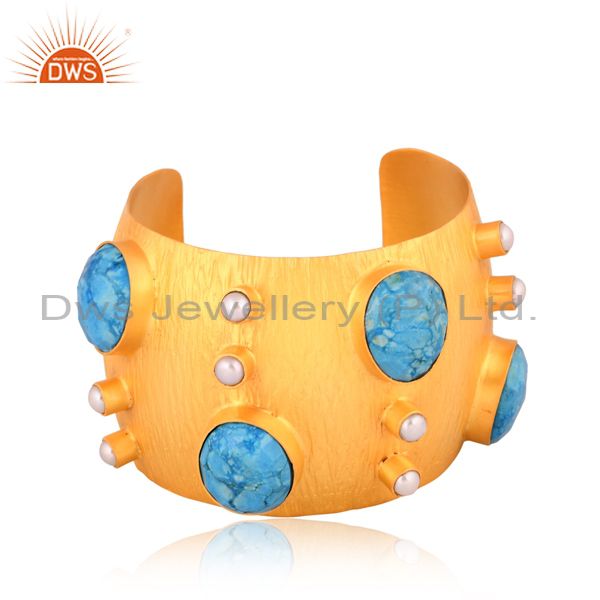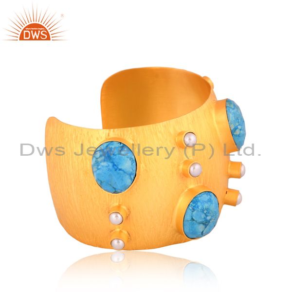 Turquoise And Pearl Set 18K Brass Gold Handmade Fancy Cuff