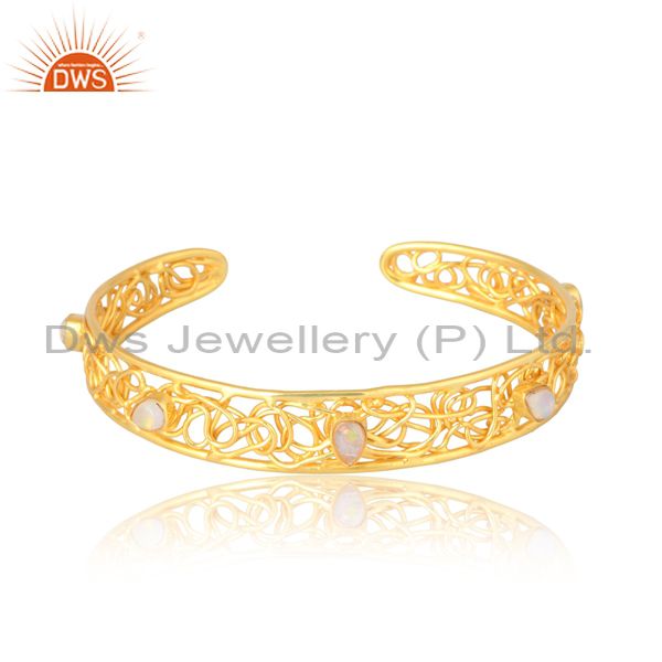 Unique Girls Silver Women Cuff In Wire And Ethiopian Opal