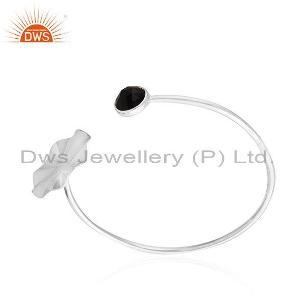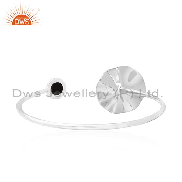 Wavy Disc 925 Fine Silver Black Onyx Gemstone Cuff Bangle Bracelets