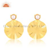 Wavy Disc Designer Gold Plated Silver Pearl Gemstone Cuff Bangles