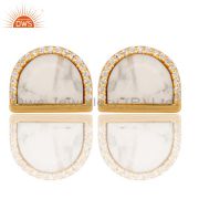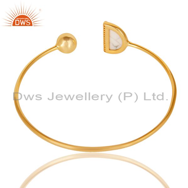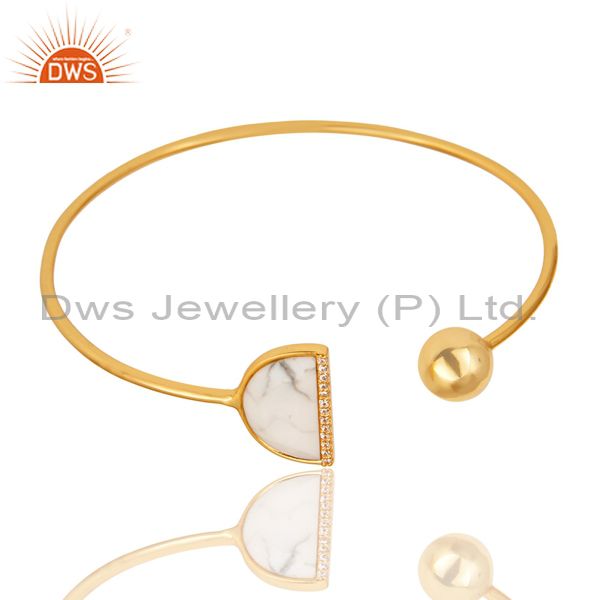 White Howlite CZ Sleek 14K Gold Plated Sterling Silver Cuff Bangle Jewelry