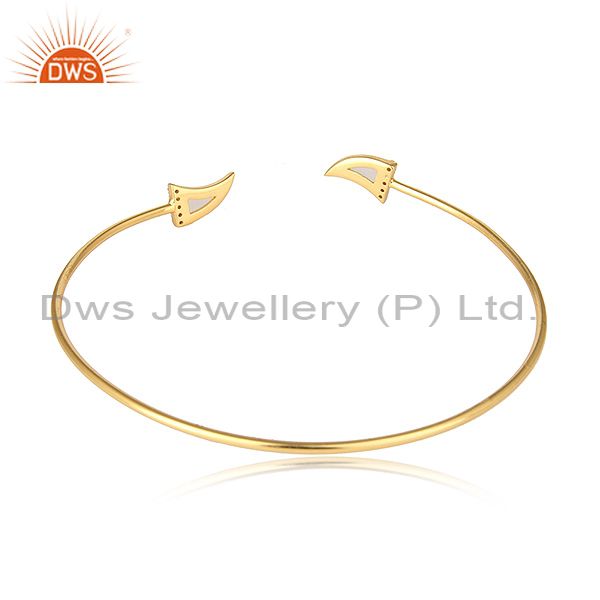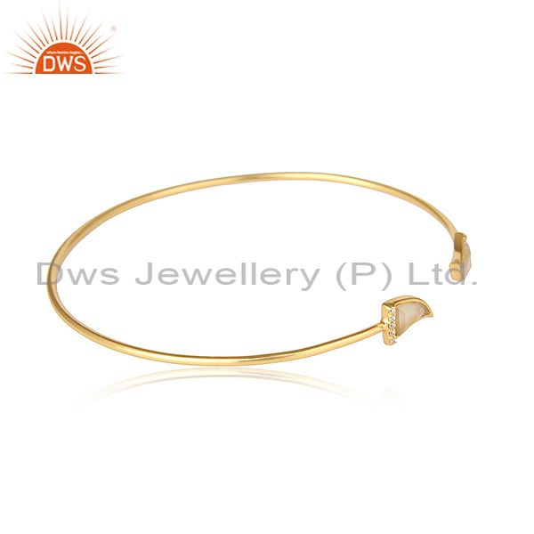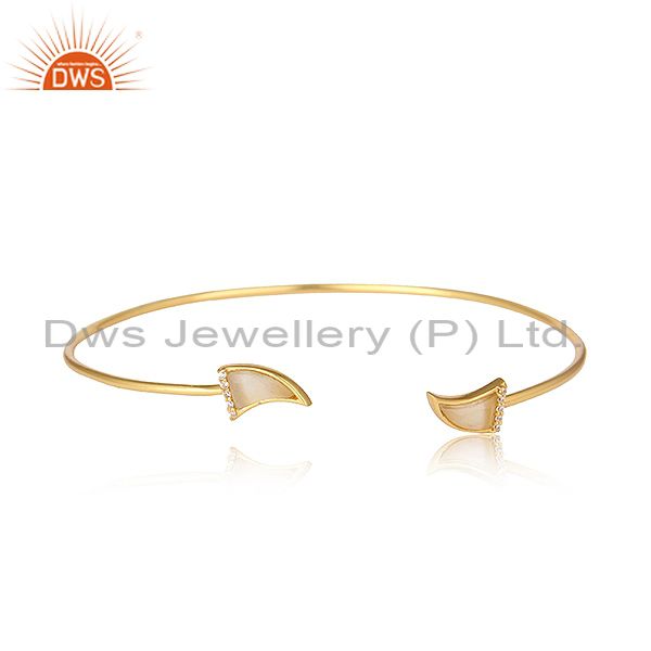 White Moonstone CZ Gemstone Horn Silver Gold Plated Cuff Bangle