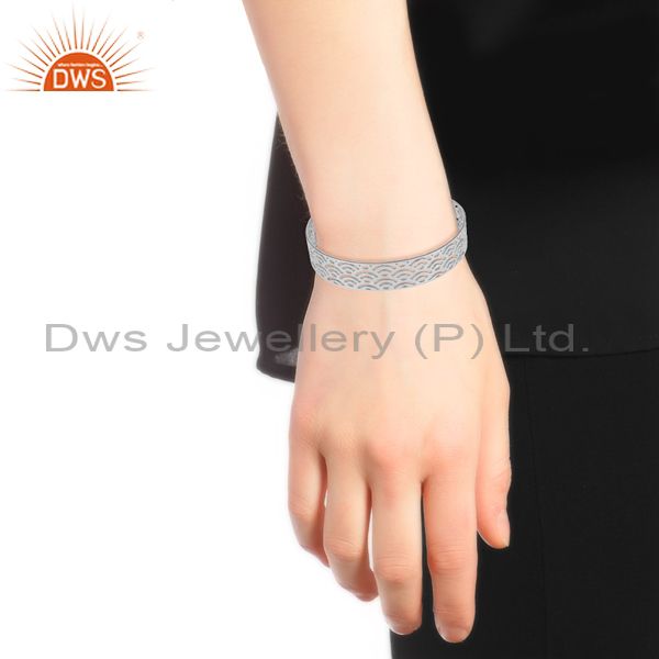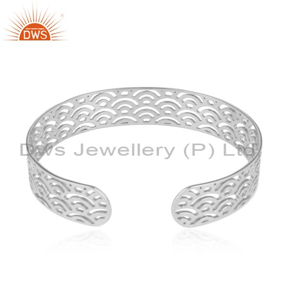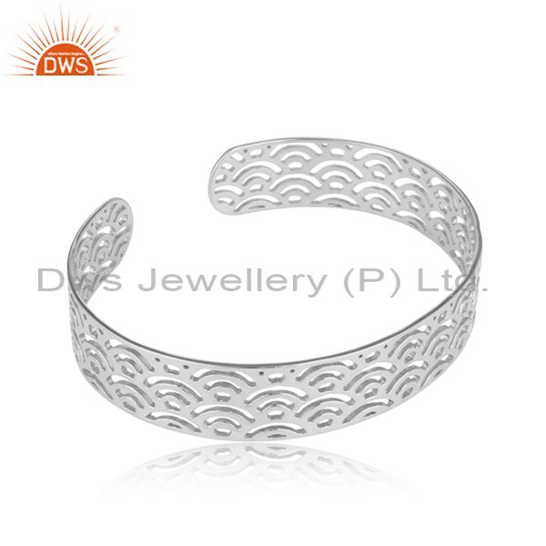 White Rhodium Plated Filigree Design Silver Cuff Bangle Jewelry