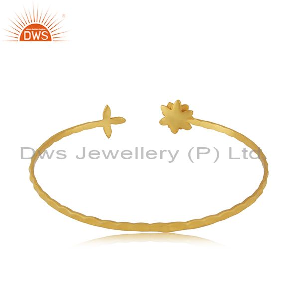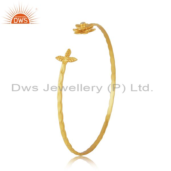 White Zircon Yellow Gold Plated Brass Fashion Cuff Bangle Manufacturer