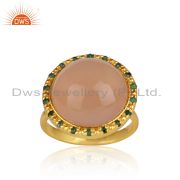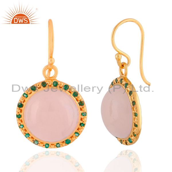 0.51 Cts Emerald Gemstone 18K Yellow Gold Gp Chalcedony Rose Sterling Silver Dan