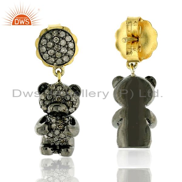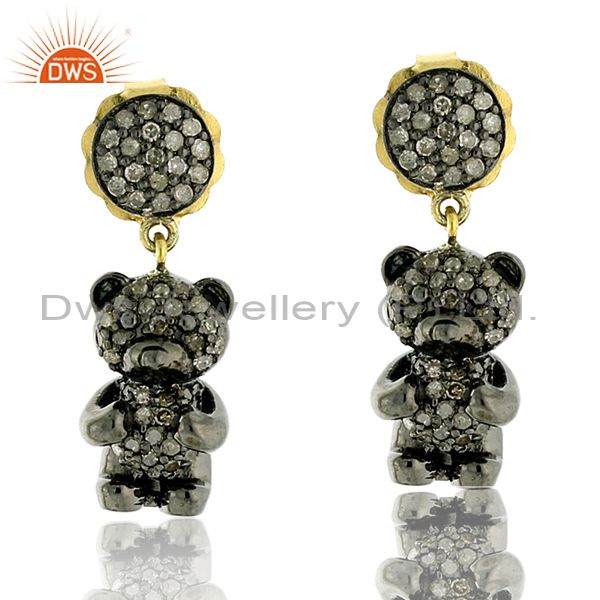 1.19ct Pave Diamond Teddy Bear Design Dangle Earrings 14kt Gold Silver Jewelry