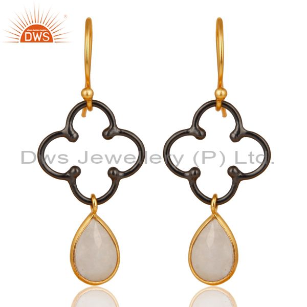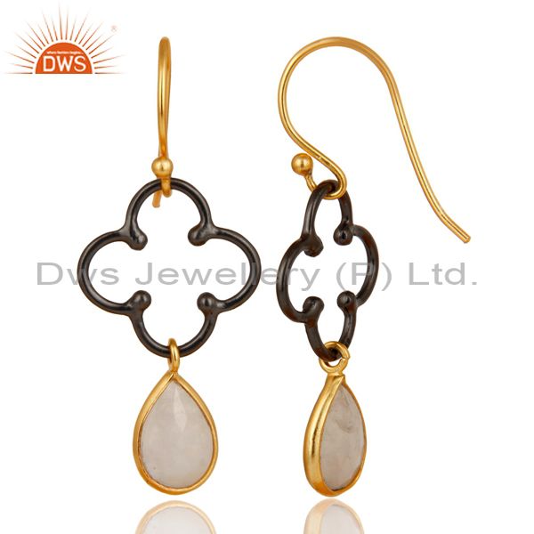 14K Gold Plated & Oxidized 925 Sterling Silver Artisan Rainbow Moonstone Earring