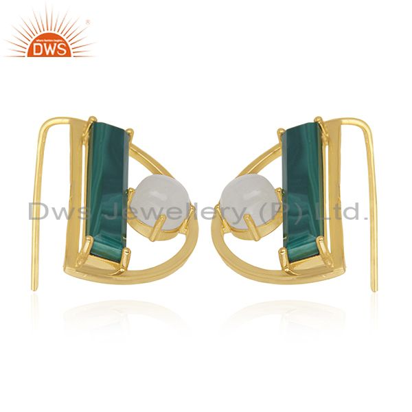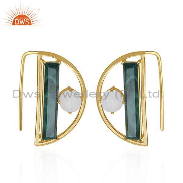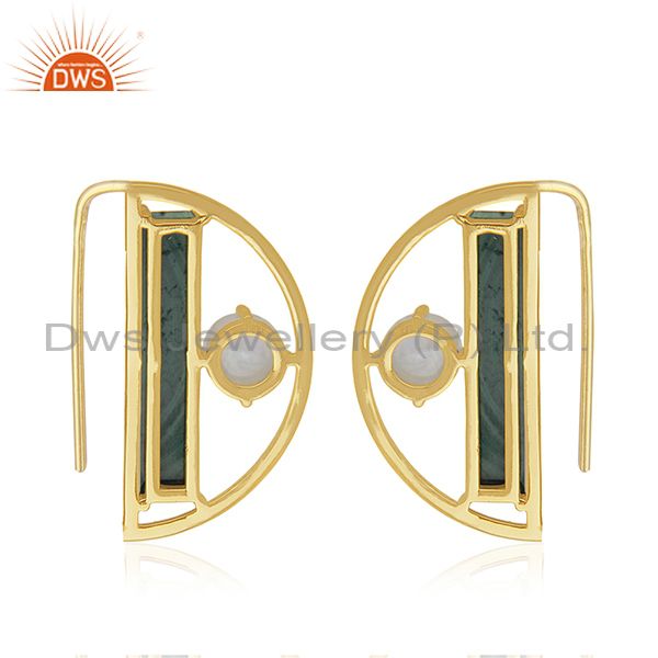 14K Gold Plated 925 Silver Half Moon Design Multi Gemstone Earring Manufacturers