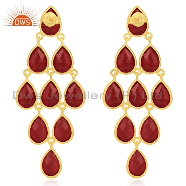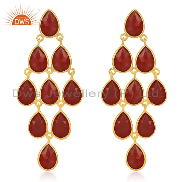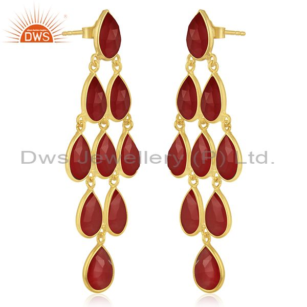 14k Gold Plated 925 Silver Red Onyx Gemstone Earring Manufacturers