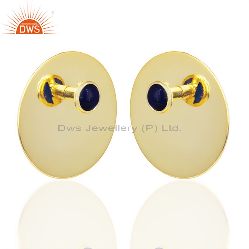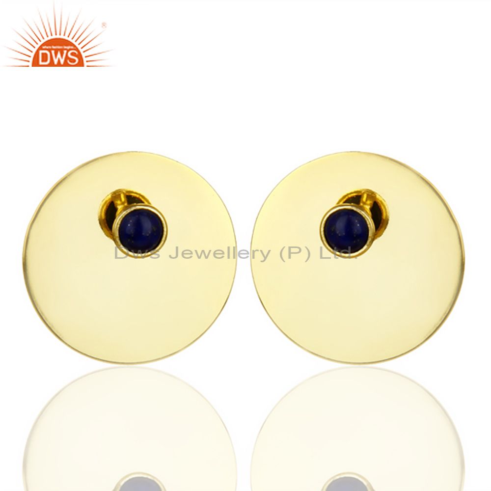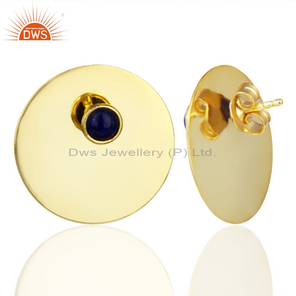 14K Gold Plated 925 Silver Round Design Lapis Lazuli Studs Earrings