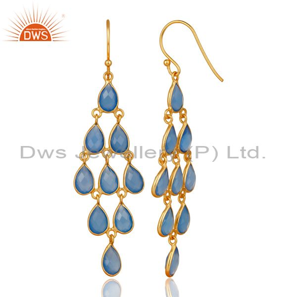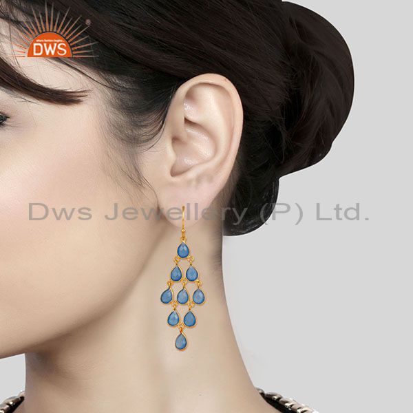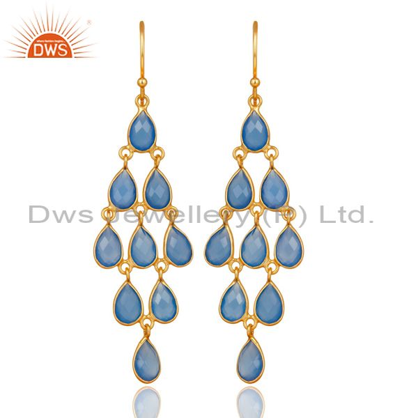 14K Gold Plated 925 Sterling Silver Dyed Chalcedony Bezel Set Dangle Earrings