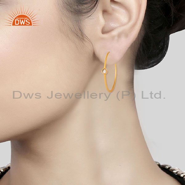 14K Gold Plated 925 Sterling Silver Handmade Crystal Quartz Dangle Earrings