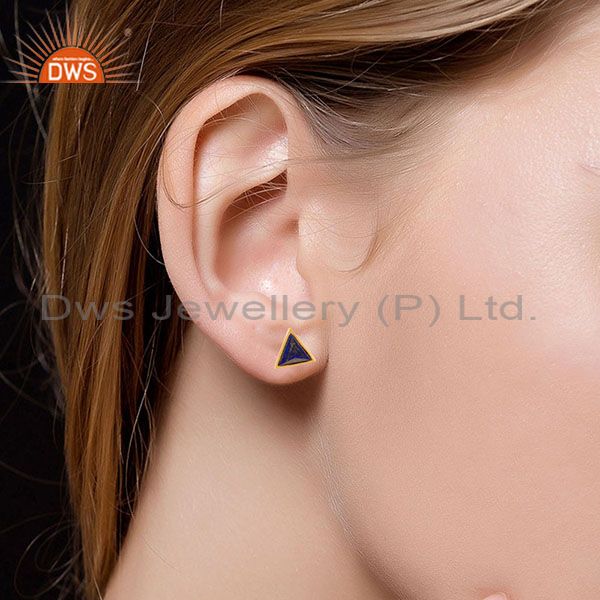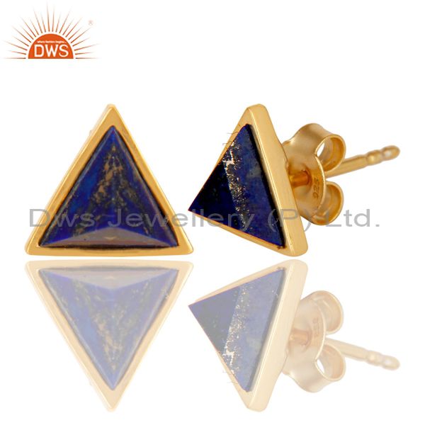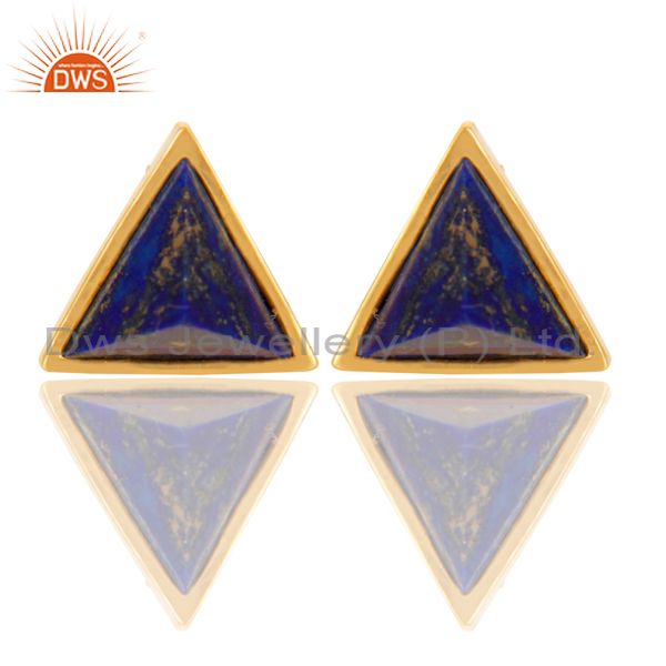 14K Gold Plated 925 Sterling Silver Handmade Lapis Pyramid Style Studs Earrings