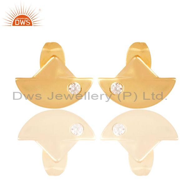 14K Gold Plated 925 Sterling Silver Handmade White Zirconia Studs Earrings