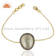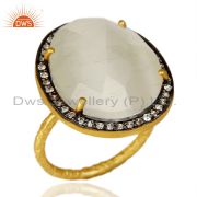 14K Gold Plated 925 Sterling Silver Moonstone White Zircon Stud Earrigs Jewelry