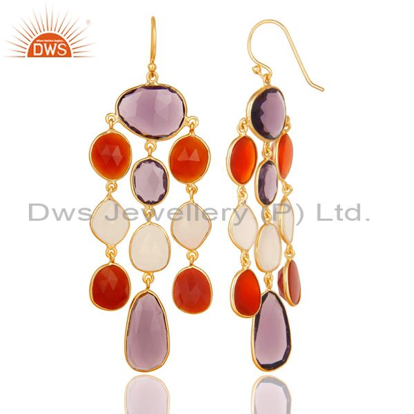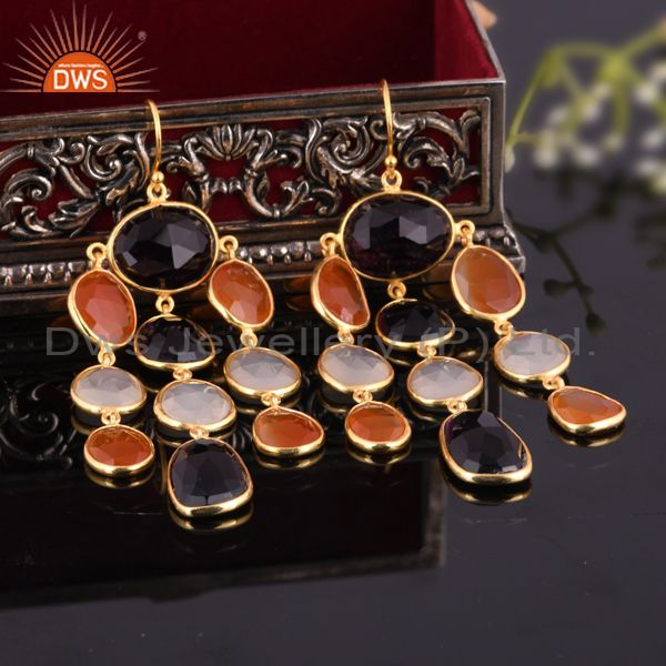 14K Gold Plated 925 Sterling Silver Multi Color Stone Chandelier Earrings