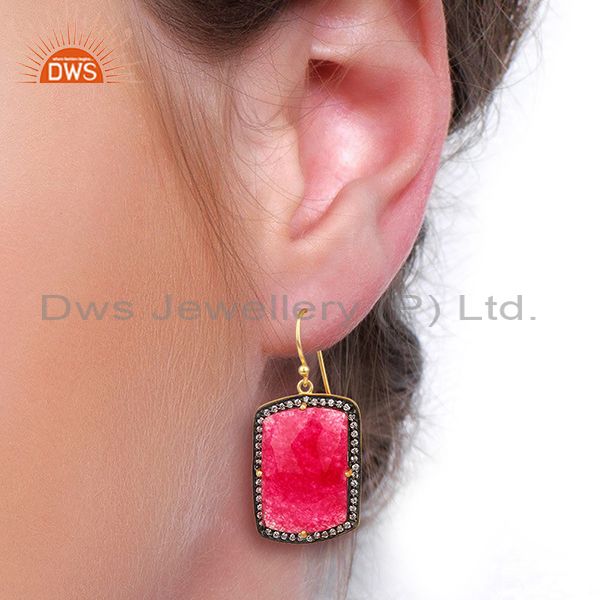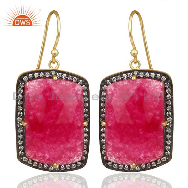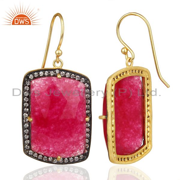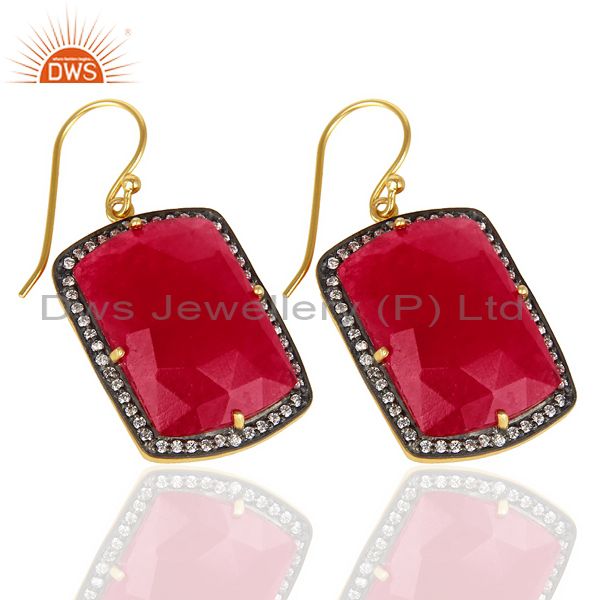 14K Gold Plated 925 Sterling Silver Red Aventurine White Zircon Drops Earrings