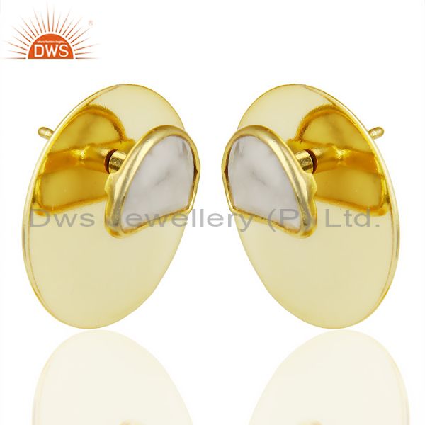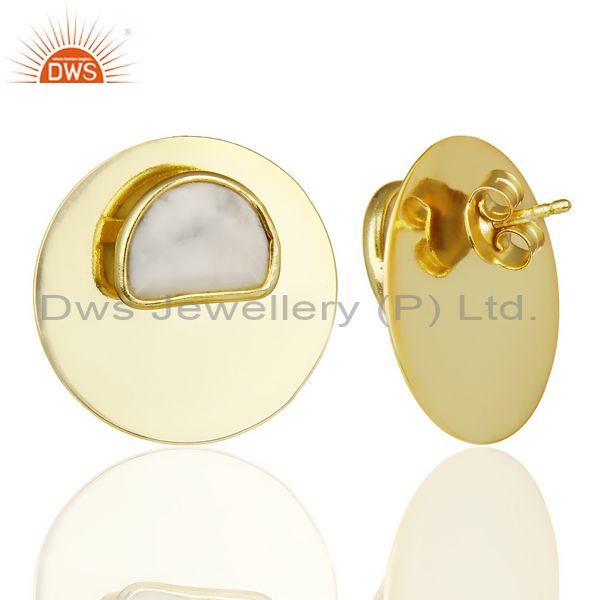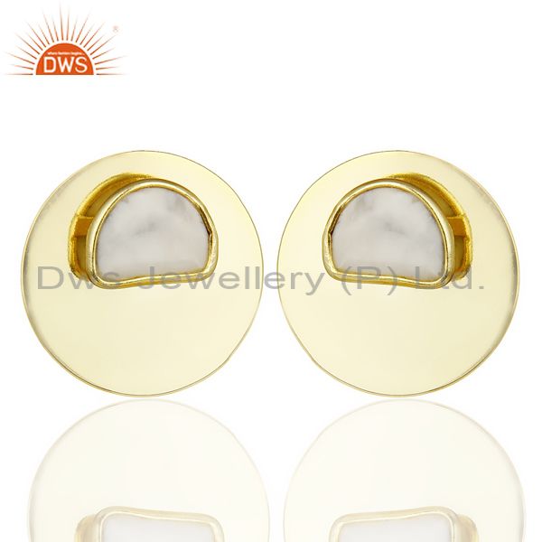 14K Gold Plated 925 Sterling Silver Round Design White Howlite Studs Earrings