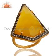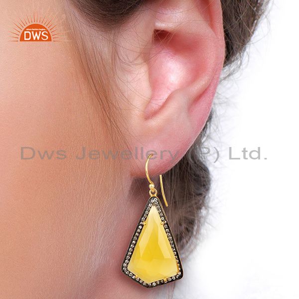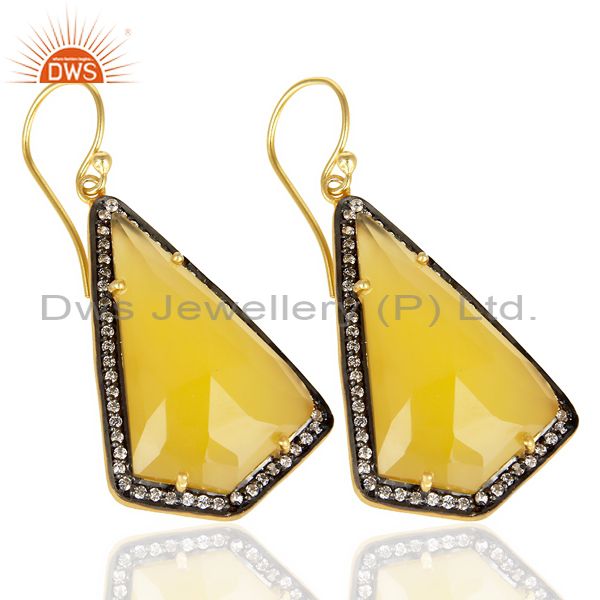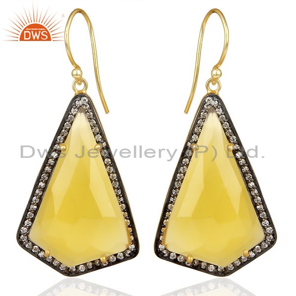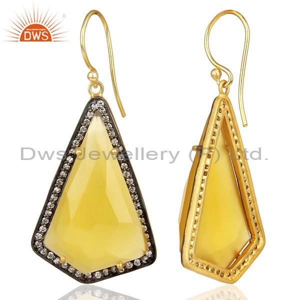 14K Gold Plated 925 Sterling Silver Yellow Chalcedony Gemstone Dangle Earrings