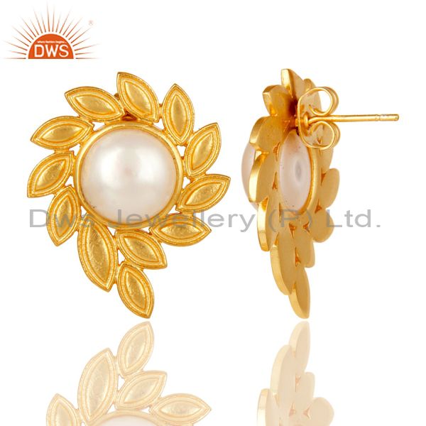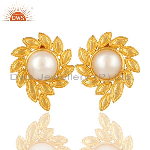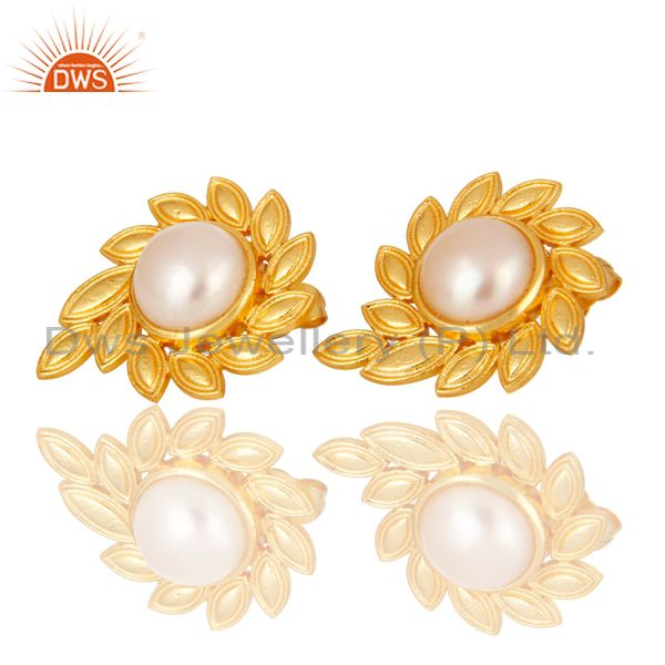 14K Gold Plated Handmade Fashion Design Pearl Studs Brass Earrings Jewellery