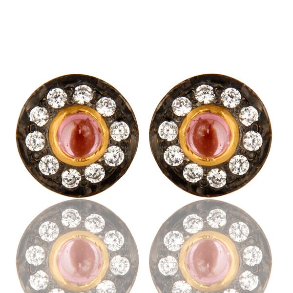 14K Gold Plated Hydro Pink And Zircon Stud Brass Earring