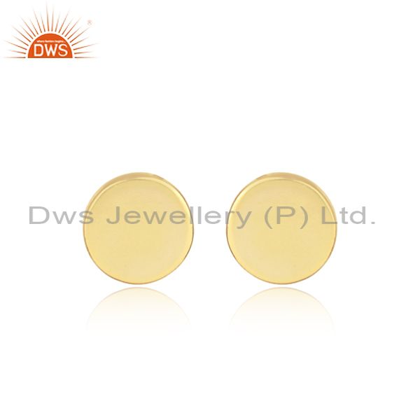 14k Gold Plated Sterling Plain Silver Round Stud Earrings Manufacturer