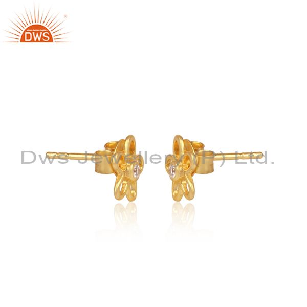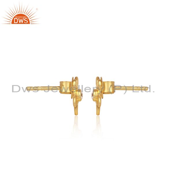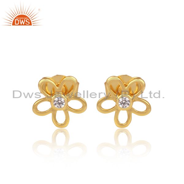 14K Gold Plated Sterling Silver Flower Design White Zirconia Studs Earrings