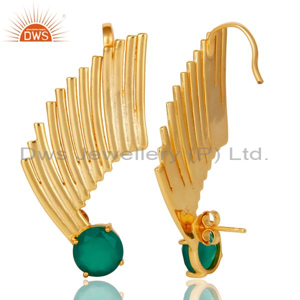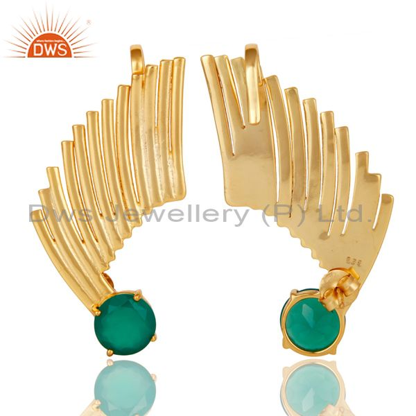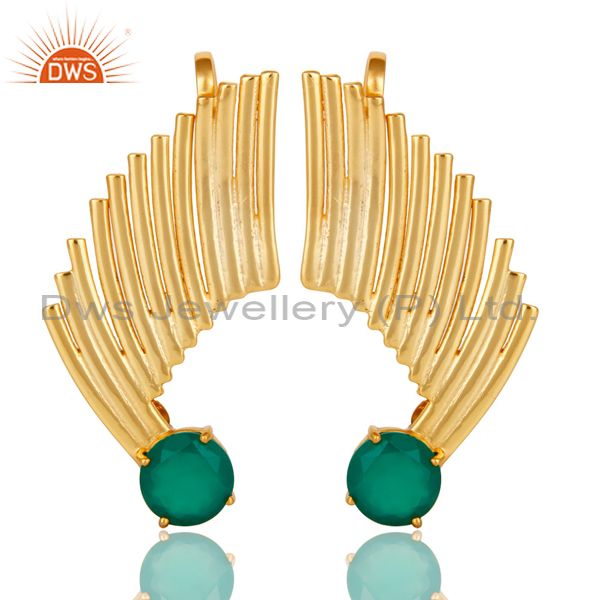 14K Gold Plated Sterling Silver Green Onyx Ladies Fashion Ear Cuff Earrings