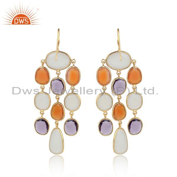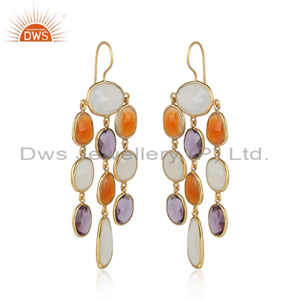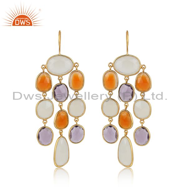 14K Gold Plated Sterling Silver Multi Color Stone Chandelier Earrings Jewelry
