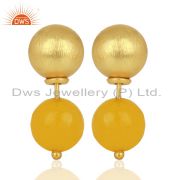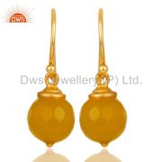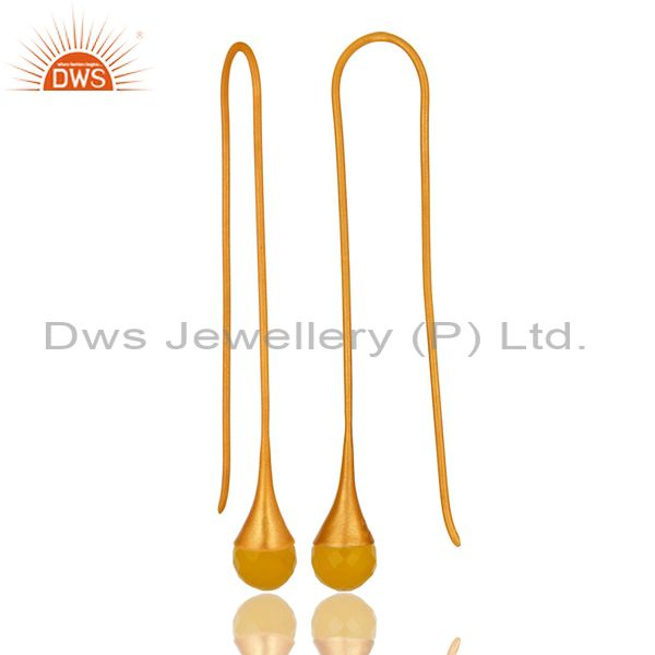 14K Gold Plated Sterling Silver Yellow Chalcedony Long Dangle Fashion Earrings