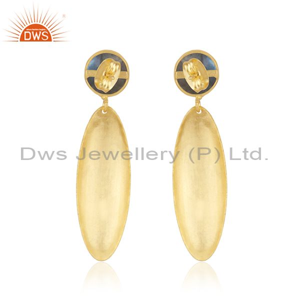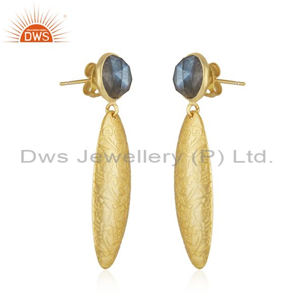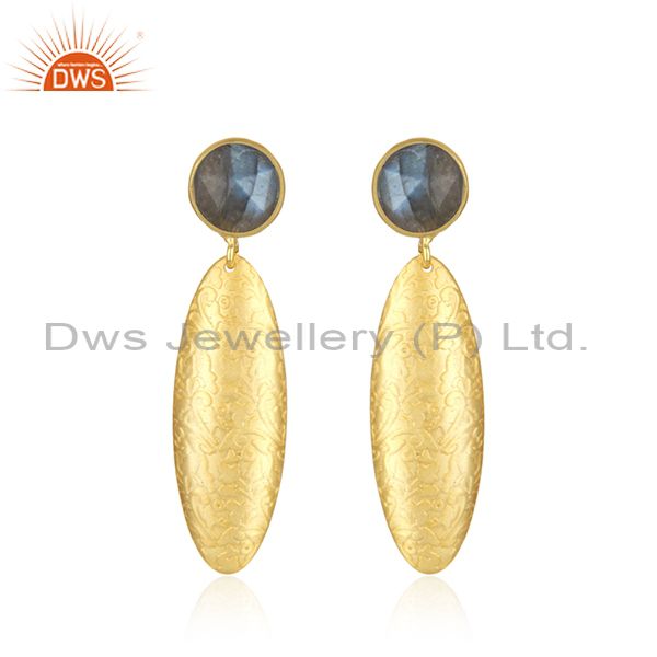 14k Gold Plated Textured Brass Labradorite Gemstone Fashion Earrings Jewelry