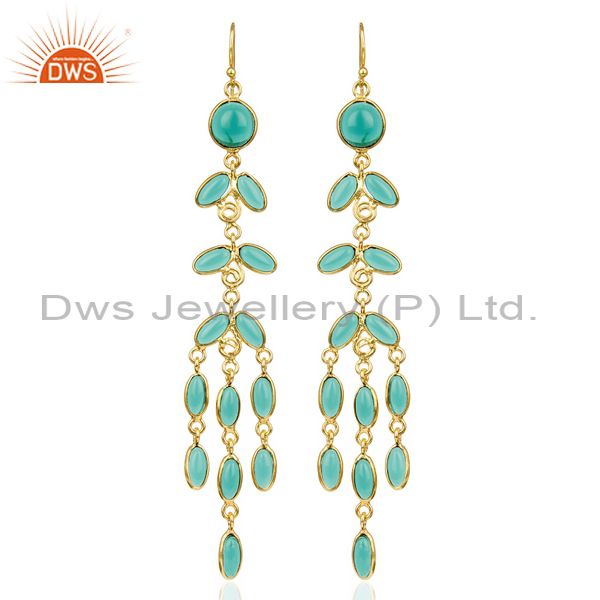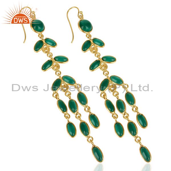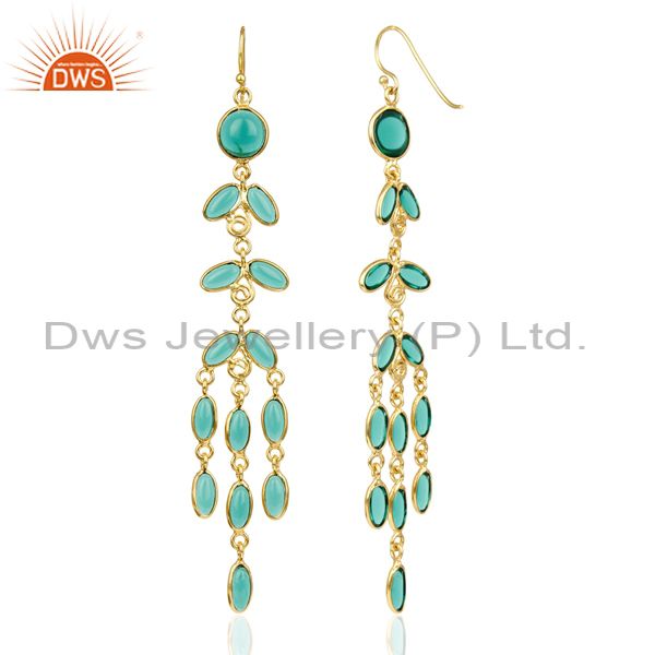 14K Gold Plated Traditional Handmade Hydro Emerald Chandelier Fashion Earrings