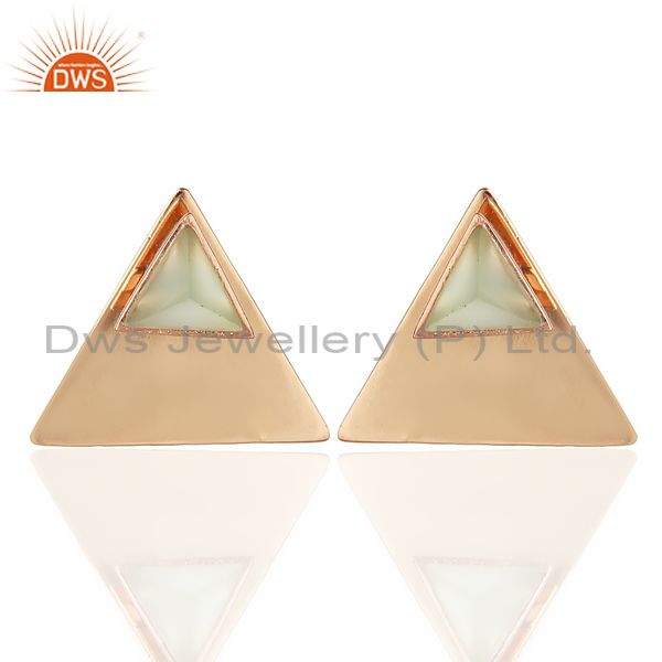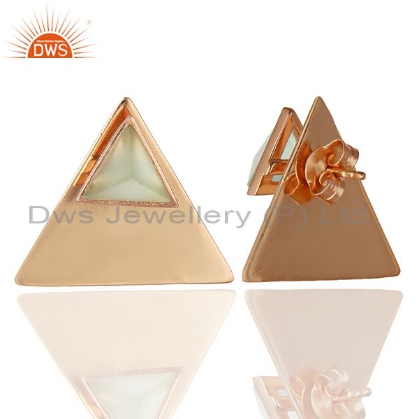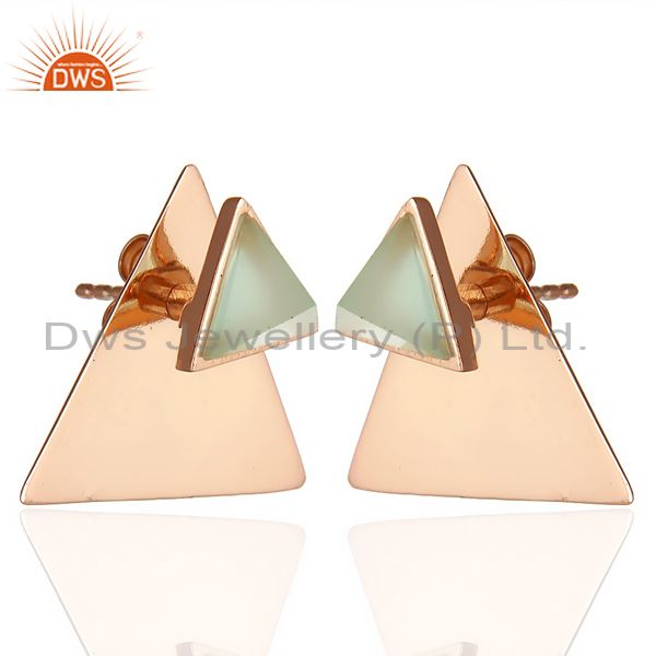 14K Rose Gold Plated 925 Silver Handmade Aqua Chalcedony Dangle Gift Earrings