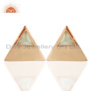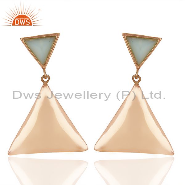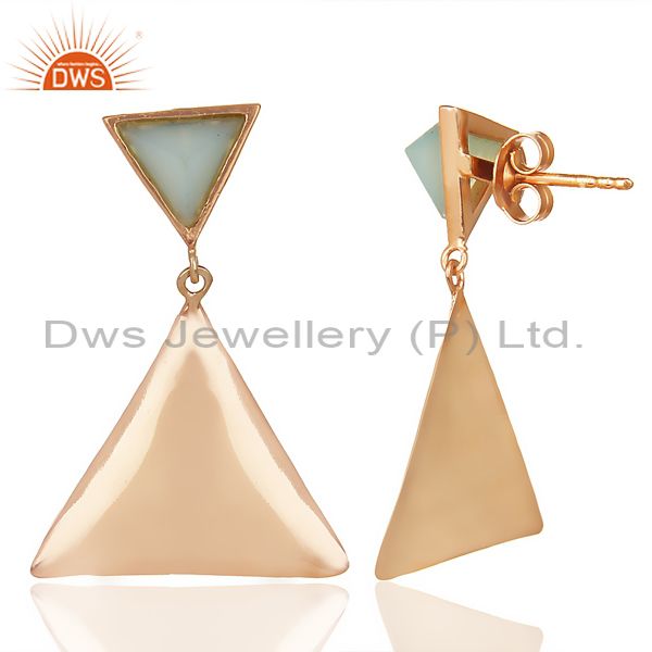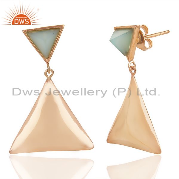 14K Rose Gold Plated 925 Silver Handmade Pyramid Design Aqua Chalcedony Earring