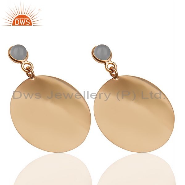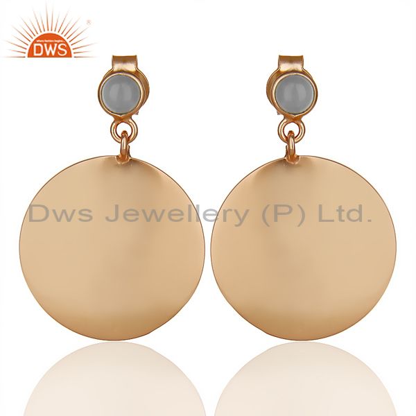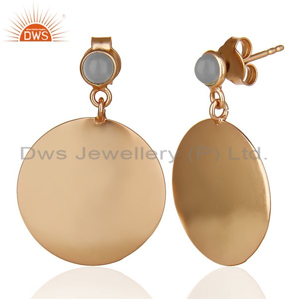 14K Rose Gold Plated 925 Silver Handmade Pyramid Design Dyed Chalcedony Earring