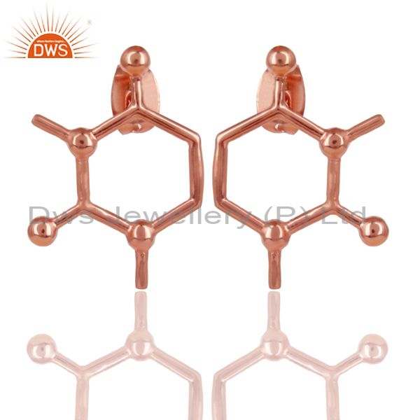 14K Rose Gold Plated 925 Sterling Silver Art Deco Fashion Studs Earrings