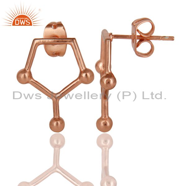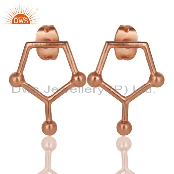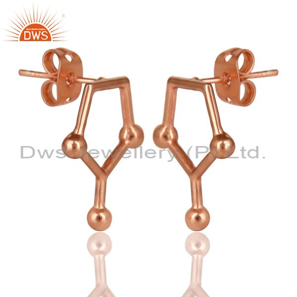 14K Rose Gold Plated 925 Sterling Silver Art Deco Spacing Fashion Stud Earrings